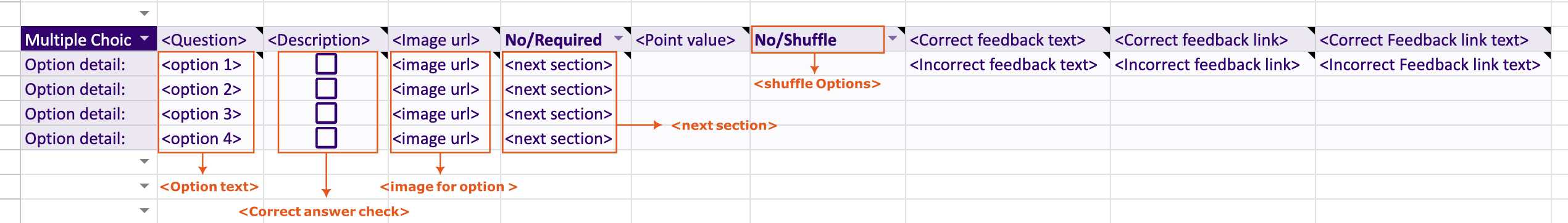 - Incorrect Feedback: Add fields for: